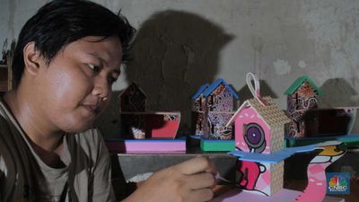 Kreatifitas ini merupakan salah satu usaha dengan modal yang relatif kecil yaitu wirausaha pembuatan souvenir dari bahan busa spon. (CNBC Indonesia/Muhammad Sabki)