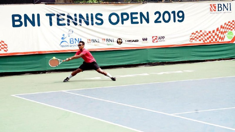 Aksi Petenis Putra M. Althaf di semi final BNI Tennis Open 2019 di Jakarta, Kamis (21 November 2019). M. Althaf harus mengakui keunggulan Christo dengan skor 6-4, 7-5. (Dok. BNI)