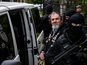 Orang-orang merayakan Malam Tahun Baru di alun-alun utama Zagreb, di tengah pandemi penyakit coronavirus (COVID-19), Kroasia (1/1/2022). (REUTERS/Antonio Bronic)