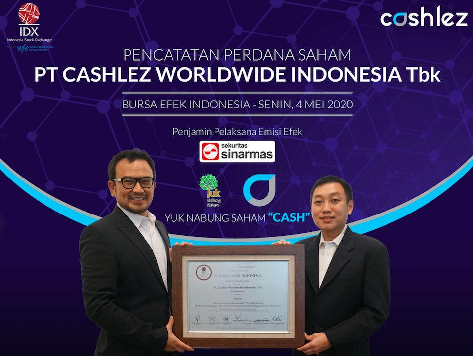 Jakarta, CNBC Indonesia - Perusahaan yang bergerak bidang teknologi finansial (fintech) sistem pembayaran, PT Cashlez Worldwide Indonesia Tbk (CASH) mencatatkan saham perdana di Bursa Efek Indonesia (BEI), Senin (4/5/2020). Perseroan menjadi emiten yang ke-27 yang tercatat atau listing tahun ini.