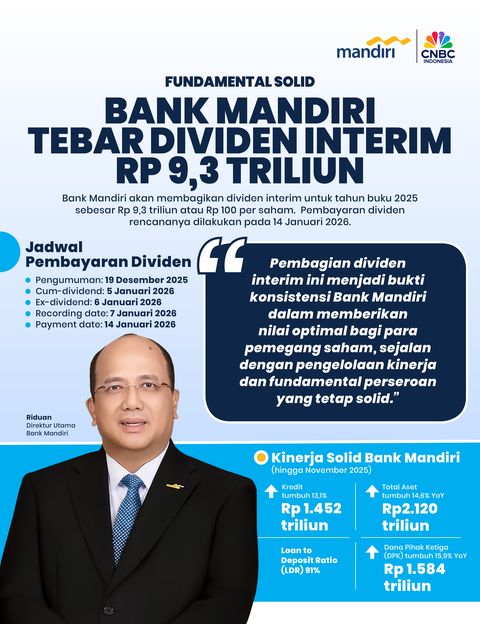 Bank Mandiri Bagikan Dividen Interim Rp 9,3 Triliun