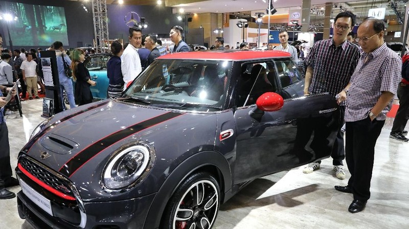 Brand legendaris Mini yang ikut majang di IIMS 2018 yakni, Mini Clubman, Mini Cabrio, All-new MINI Countryman, model paling atletis MINI 3-Door John Cooper Works. Mini 3-Door John Cooper Works ini dijual dengan harga Rp1.040.000.000 (CNBC Indonesia/Andrean Kristianto