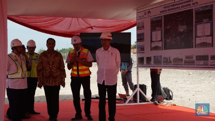 Jakarta, CNBC Indonesia - Presiden Joko Widodo hari ini meninjau proyek Bandara Soekarno - Hatta.