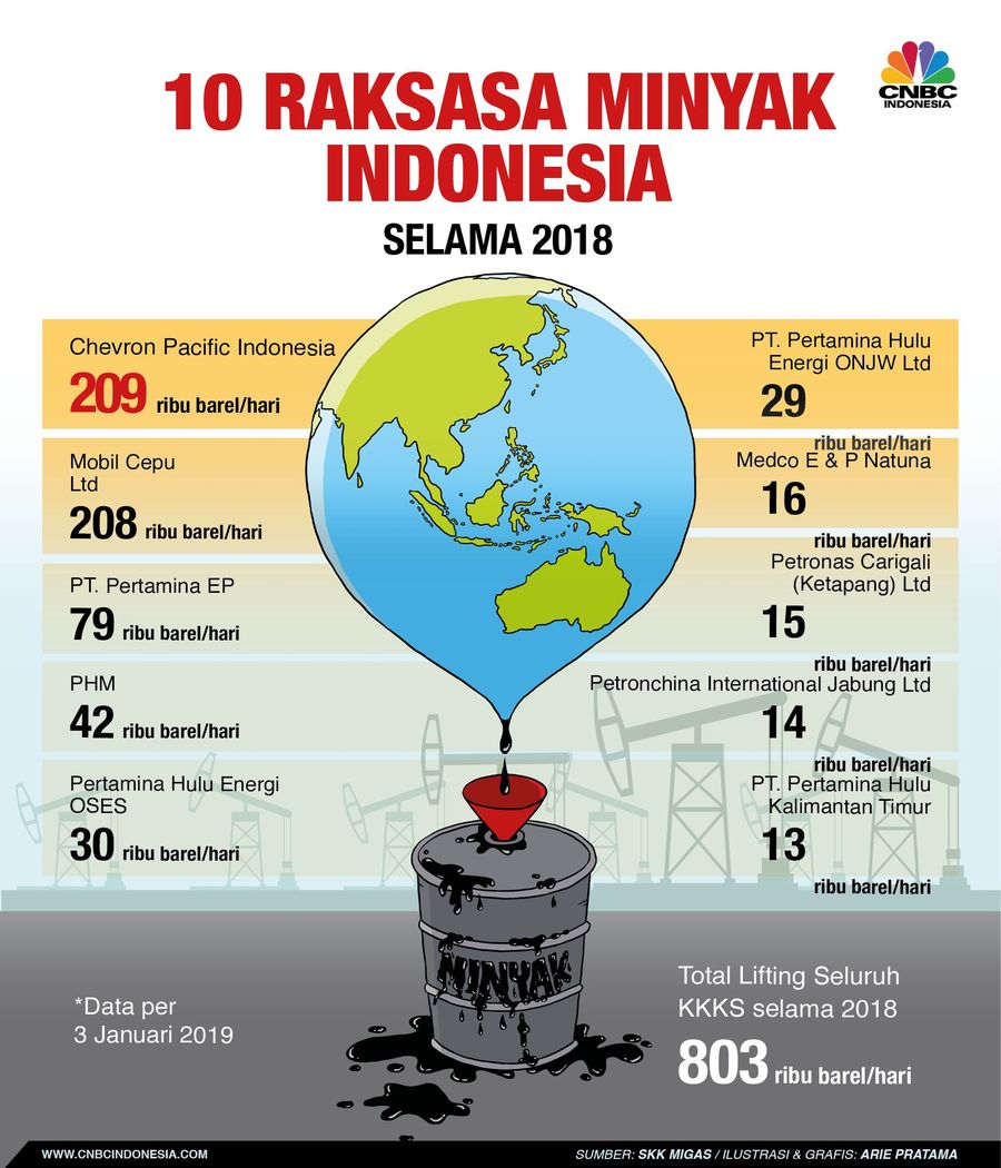 Jakarta, CNBC Indonesia- Satuan Kerja Khusus Pelaksana Kegiatan Usaha Hulu Minyak dan gas (SKK Migas) merilis daftar kontraktor kontrak kerja sama (KKKS) yang masuk dalam jajaran kontributor produksi dan lifting minyak terbesar di RI. Berikut adalah daftarnya.