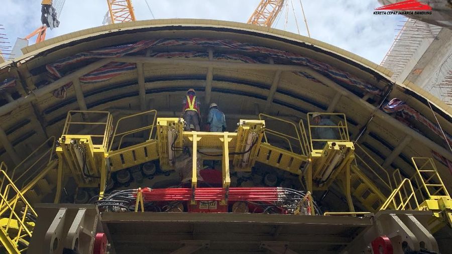"Metode ini bekerja seperti cacing bawah tanah dimana selama proses pengeboran hampir tidak menimbulkan gangguan bagi aktivitas kendaraan atau masyarakat yang berlangsung diatasnya," kata Direktur Utama PT Kereta Cepat Indonesia - China Chandra Dwiputra. (Dok. KCIC)