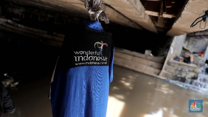 Aktivitas warga di kolong jembatan Kali Ciliwung, Kelurahan Pegangsaan Kecamatan Menteng, Jakarta, Selasa (29/12/3030). (CNBC Indonesia/Muhammad Sabki)