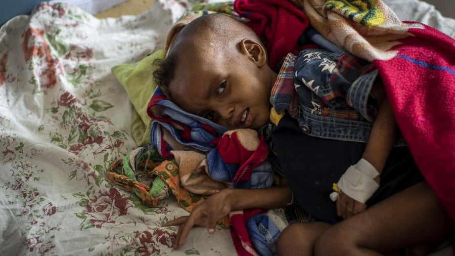 Perserikatan Bangsa-Bangsa (PBB) mengungkapkan lebih dari 350 ribu orang di wilayah Tigray mengalami kelaparan yang mengerikan. Situasi ini diperkirakan akan memburuh hingga September mendatang. (AP Photo/Ben Curtis)