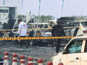 Petugas kepolisia menutup jalan di sebuah pos pemeriksaan pintu masuk ke Hanoi, Vietnam, Sabtu (24/7/2021). Pemerintah Vietnam akhirnya memberlakukan penguncian wilayah atau lockdown selama 15 hari di ibu kota, Hanoi, demi mengatasi lonjakan kasus infeksi virus corona. (AP Photo/Hieu Dinh)