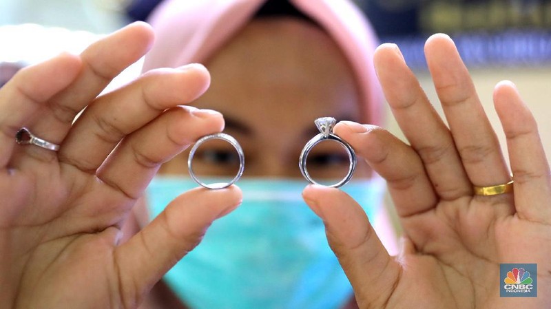 Pantauan CNBC Indonesia di Pasar Emas Cikini, harga perak terpantau stabil, salah satu toko yaitu toko Bukit Mas, harga perak dijual per-ring seharga Rp700 ribu., sedangkan di Toko Yossi berlian perak dijual per gram seharga Rp200 ribu. (CNBC Indonesia/ Muhammad Sabki)