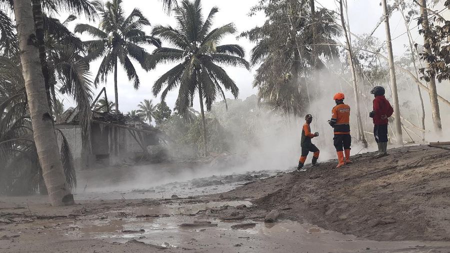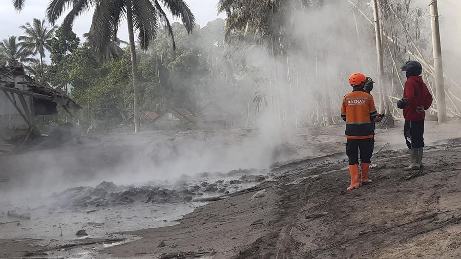 Wakil Bupati Lumajang Indah Masdar mengatakan ada korban meninggal dan luka-luka akibat letusan gunung semeru sore tadi. Dari proses evakuasi, terdapat 1 orang yang meninggal dan 41 orang lainnya luka-luka. (AP Photo)