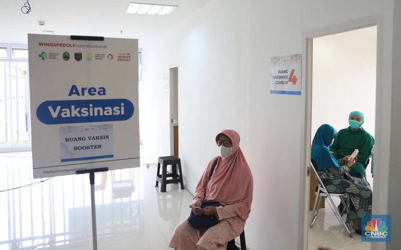Booster vaksin diberikan kepada mereka yang sudah disuntik dosis kedua vaksin Covid-19 enam bulan sebelumnya. (CNBC Indonesia/Muhammad Sabki)