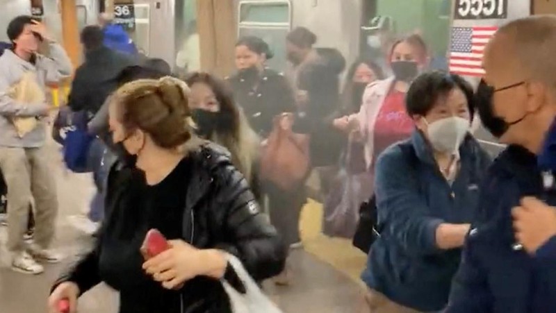 Saat tiba di stasiun kereta bawah tanah 36th Street, tersangka terlihat mengenakan masker gas. Ia kemudian mengeluarkan tabung dari tasnya dan membukanya. "Kereta pada waktu itu mulai dipenuhi asap. Dia kemudian melepaskan tembakan, menyerang banyak orang di kereta bawah tanah dan di peron," terangnya. (AP Photo/John Minchillo)