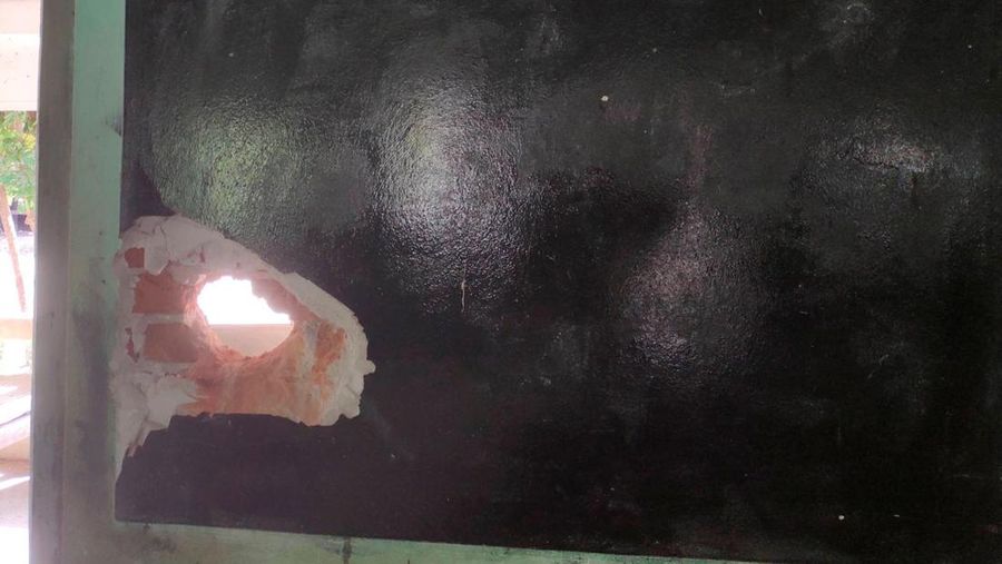 Gambar-gambar yang diposting ke media sosial menunjukkan apa yang tampak seperti kerusakan di lokasi serangan, termasuk beberapa lubang bekas peluru dan noda darah di gedung sekolah tersebut. (via REUTERS/SOCIAL MEDIA)