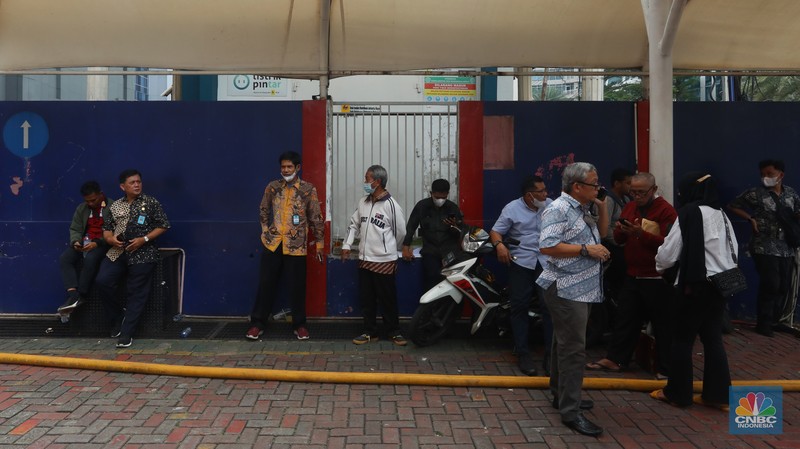 Koordinator Humas Sekretariat Jenderal Kemenkumham, Tugagus Erif Faturahman, menyampaikan seluruh pegawai Kemenkumham telah dievakuasi ke luar gedung melalui tangga darurat, sesuai prosedur keselamatan. Hingga saat ini, para pegawai Kemenkumham masih berada di pekarangan. Mereka masih menunggu sampai diperbolehkan masuk. (CNBC Indonesia/Andrean Kristianto)