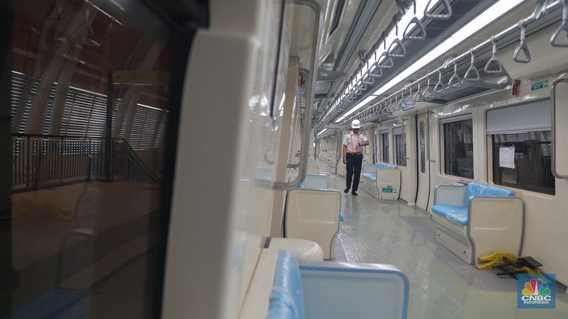 Metode uji coba ini juga membuat tiap kereta akan berhenti pada setiap stasiun dengan durasi waktu henti sesuai saat operasional. (CNBC Indonesia/ Muhammad Sabki)