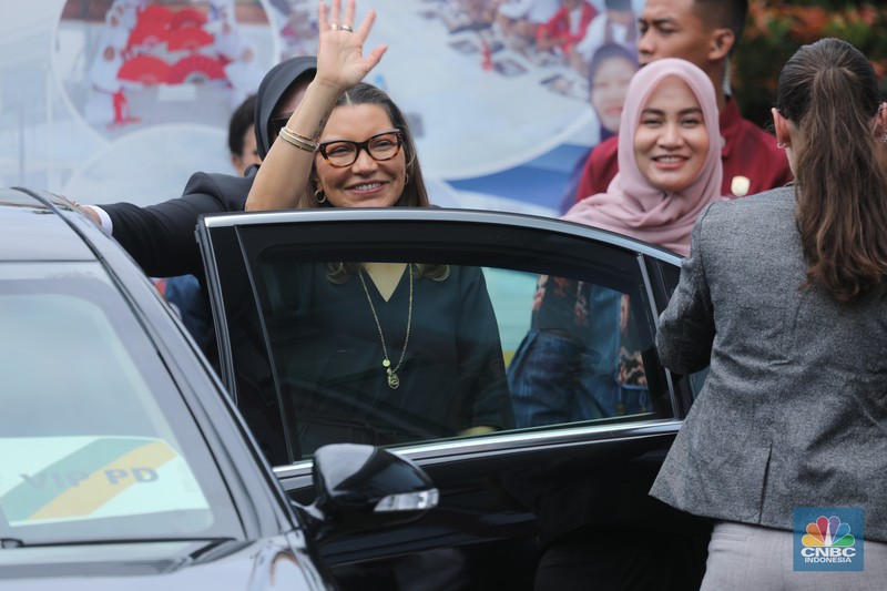Kunjungan ini merupakan bagian dari agenda resmi Kunjungan Kenegaraan Ibu Negara Brasil di Indonesia. Sebelumnya, dirinya juga mendampingi Presiden Brasil Luiz Inácio Lula da Silva saat pertemuan dengan Presiden Prabowo Subianto di Istana Merdeka, Jakarta, Kamis. (CNBC Indonesia/Tri Susilo)