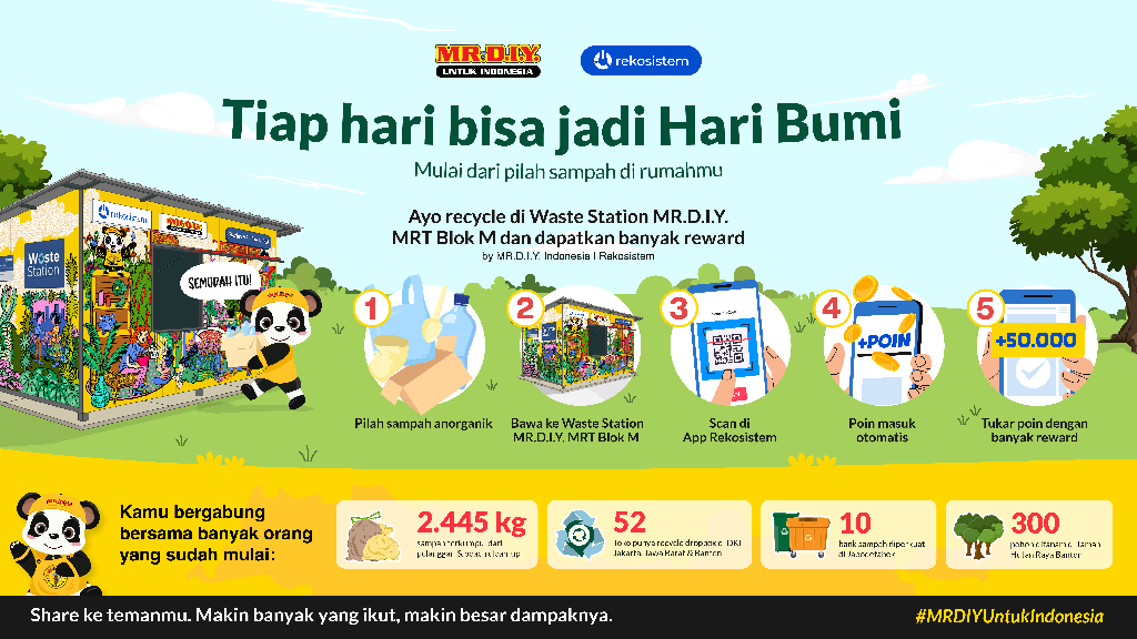 Apalagi, peluncuran Waste Station ini bukan inisiatif tunggal dan kelanjutan dari perjalanan panjang MR.D.I.Y. Indonesia dalam mendukung penguatan ekosistem pengelolaan sampah yang nyata dan terukur melalui pilar keberlanjutan lingkungan dari inisiatif "MR.D.I.Y. Untuk Indonesia".