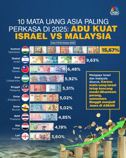 10 Mata Uang Asia Paling Perkasa di 2025: Adu Hebat Israel vs Malaysia