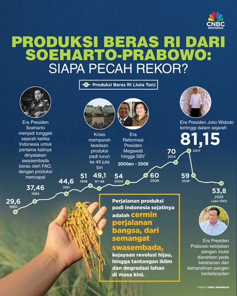 Produksi Beras RI dari Era Soeharto-Prabowo: Siapa Pecah Rekor?