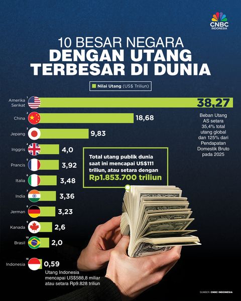 Utang Dunia Tembus US$110 Triliun: Negara Mana Paling Banyak Berutang?