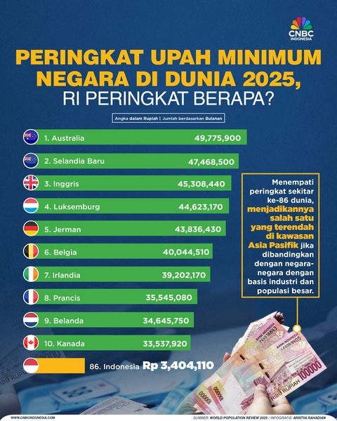 Peringkat Upah Minimum Negara di Dunia 2025, Ri Peringkat berapa?