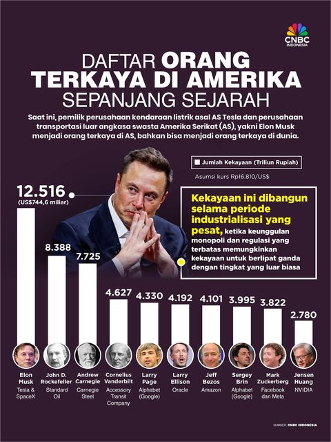 Daftar Orang Terkaya di AS Sepanjang Sejarah, Elon Musk Tak Terkendali