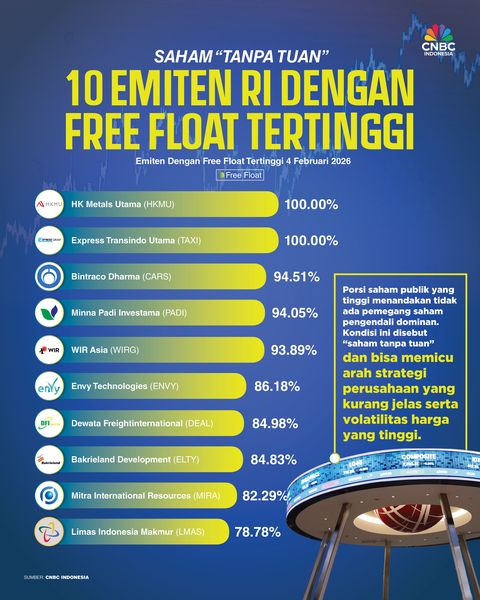 Saham "Tanpa Tuan", Ini 10 Emiten RI dengan Free Float Paling Jumbo
