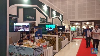 Pengunjung menghadiri both stand di Festival Ekonomi Syariah Indonesia 2018, Surabay, Jawa Timur, Kamis (13/12). (CNBC Indonesia/Rehia Sebayang)