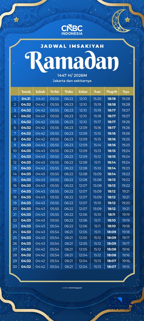 Jadwal Imsakiyah Ramadan 1447 H/2026 M untuk Jakarta dan Sekitarnya