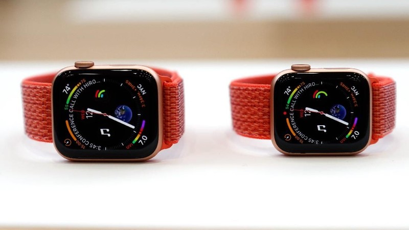 Selain iPhone, apple meluncurkan Apple Watch Series 4. Apple Watch baru ini dilengkapi dengan sensor kesehatan baru yang memungkinkan Anda memiliki elektrokardiogram (ECG), yang mengukur ritme jantung dan memberi tahu Anda jika mendeteksi adanya fibrilasi atrium. (REUTERS/Stephen Lam)